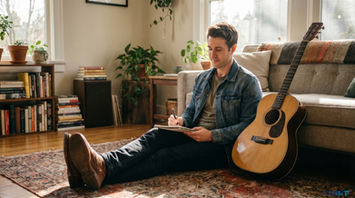 평상시 모습: 기타 들고 데모 녹음, 창가에서 가사 작성, 밤 산책