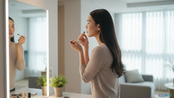 평상시 모습: 메이크업 톤을 정리하며 무드 체크